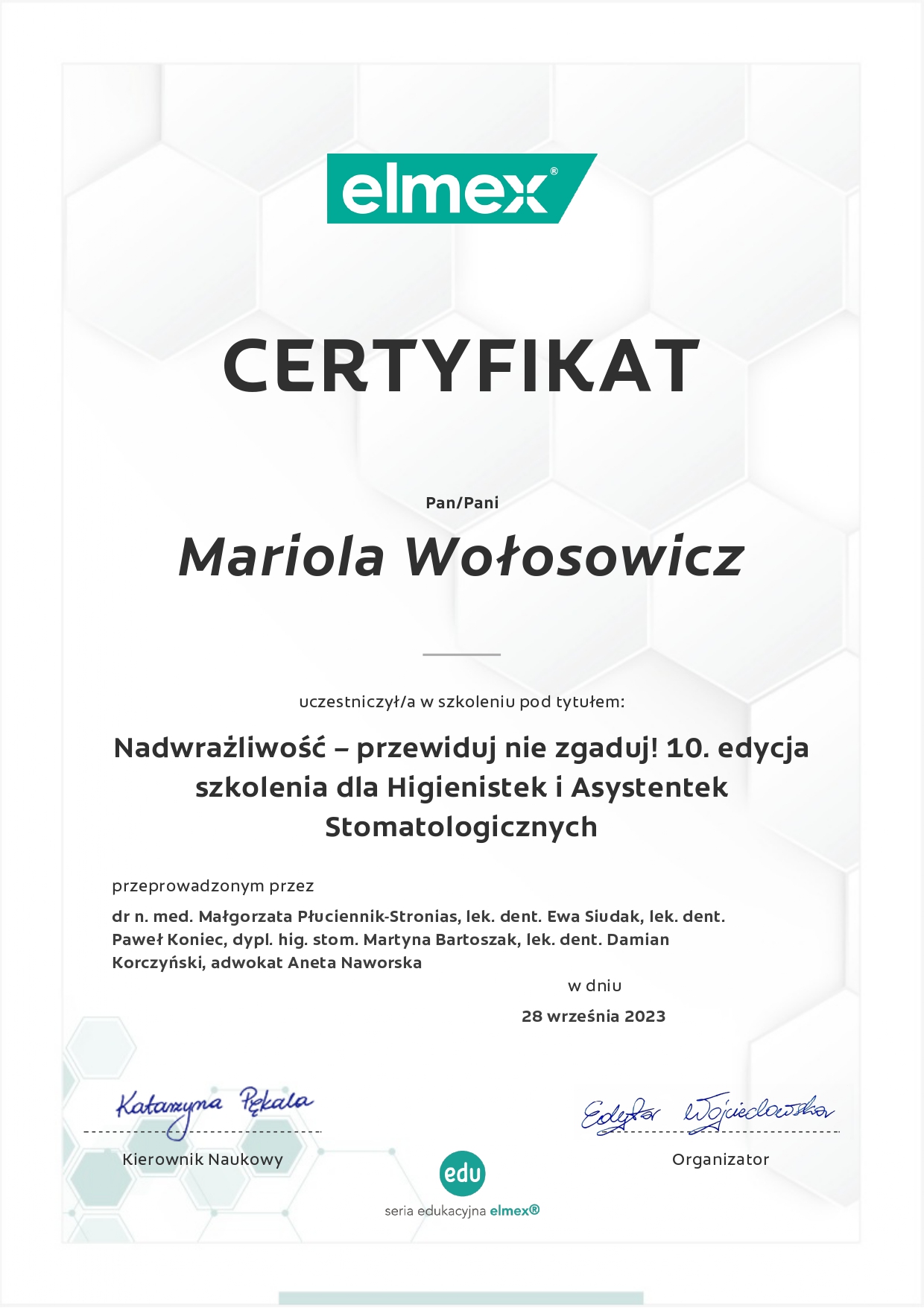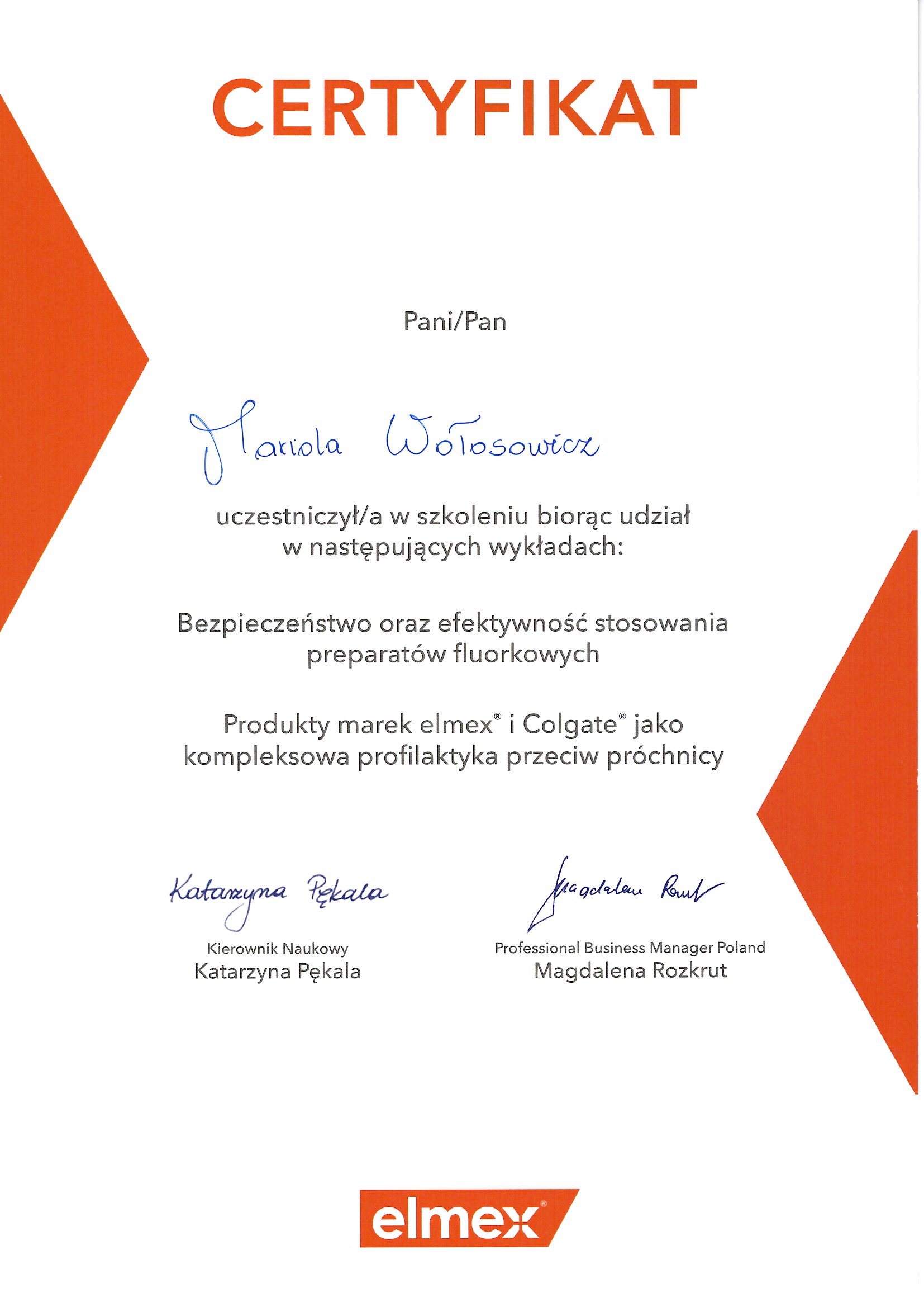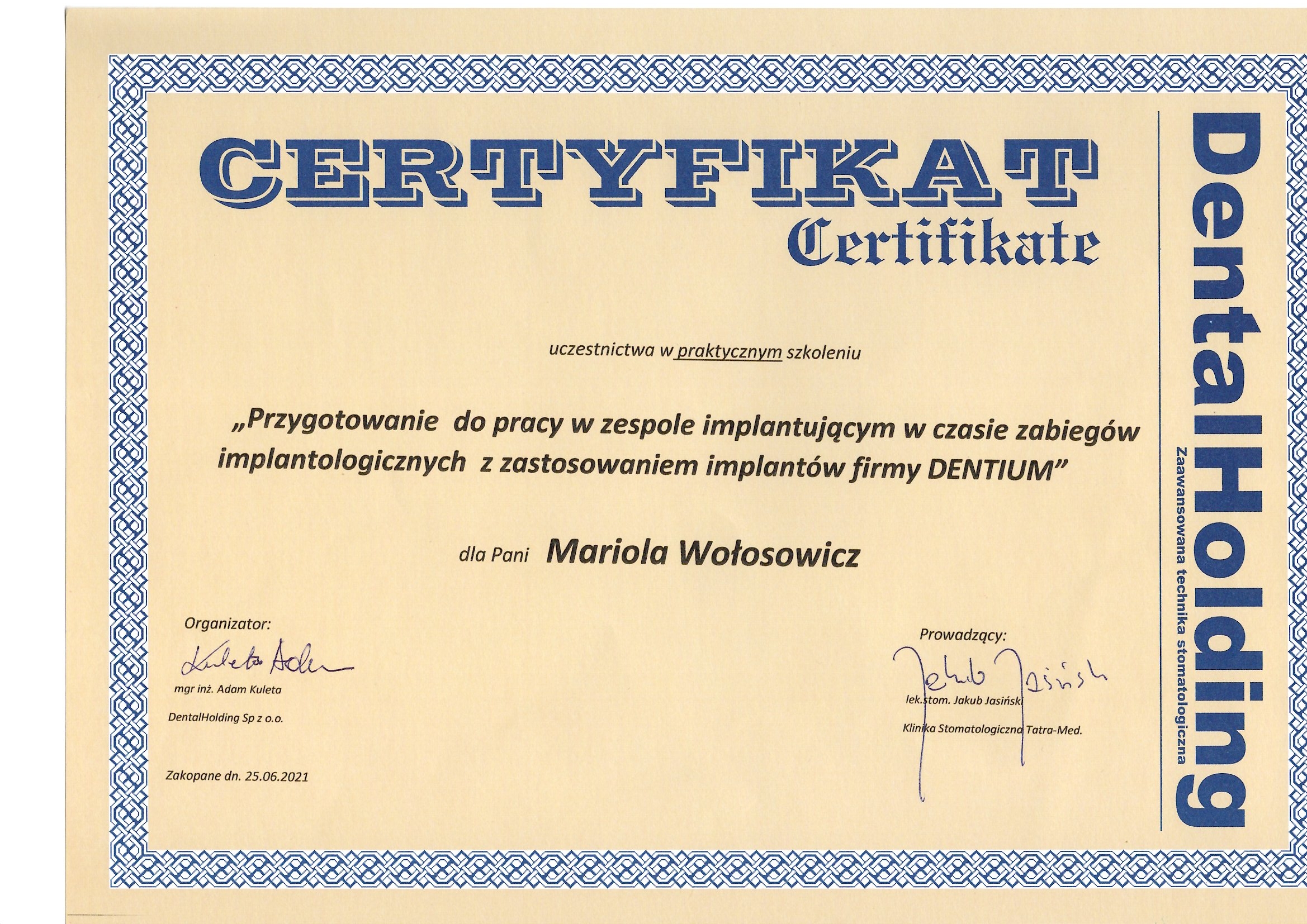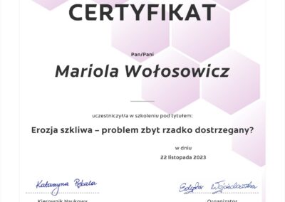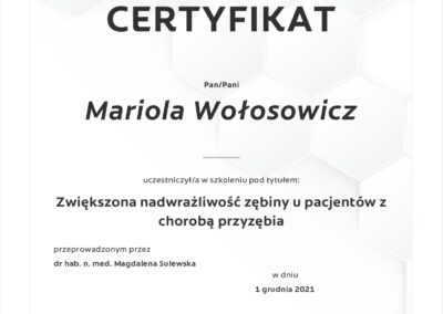 Regularnie podnoszę kwalifikacje uczestnicząc w licznych kursach i szkoleniach,