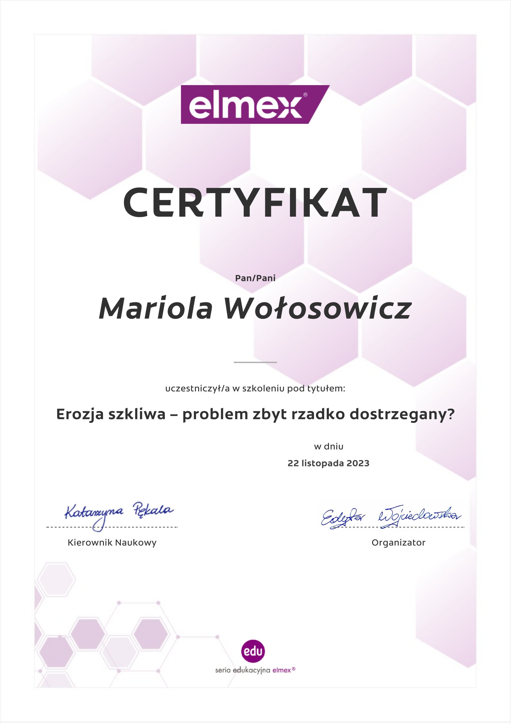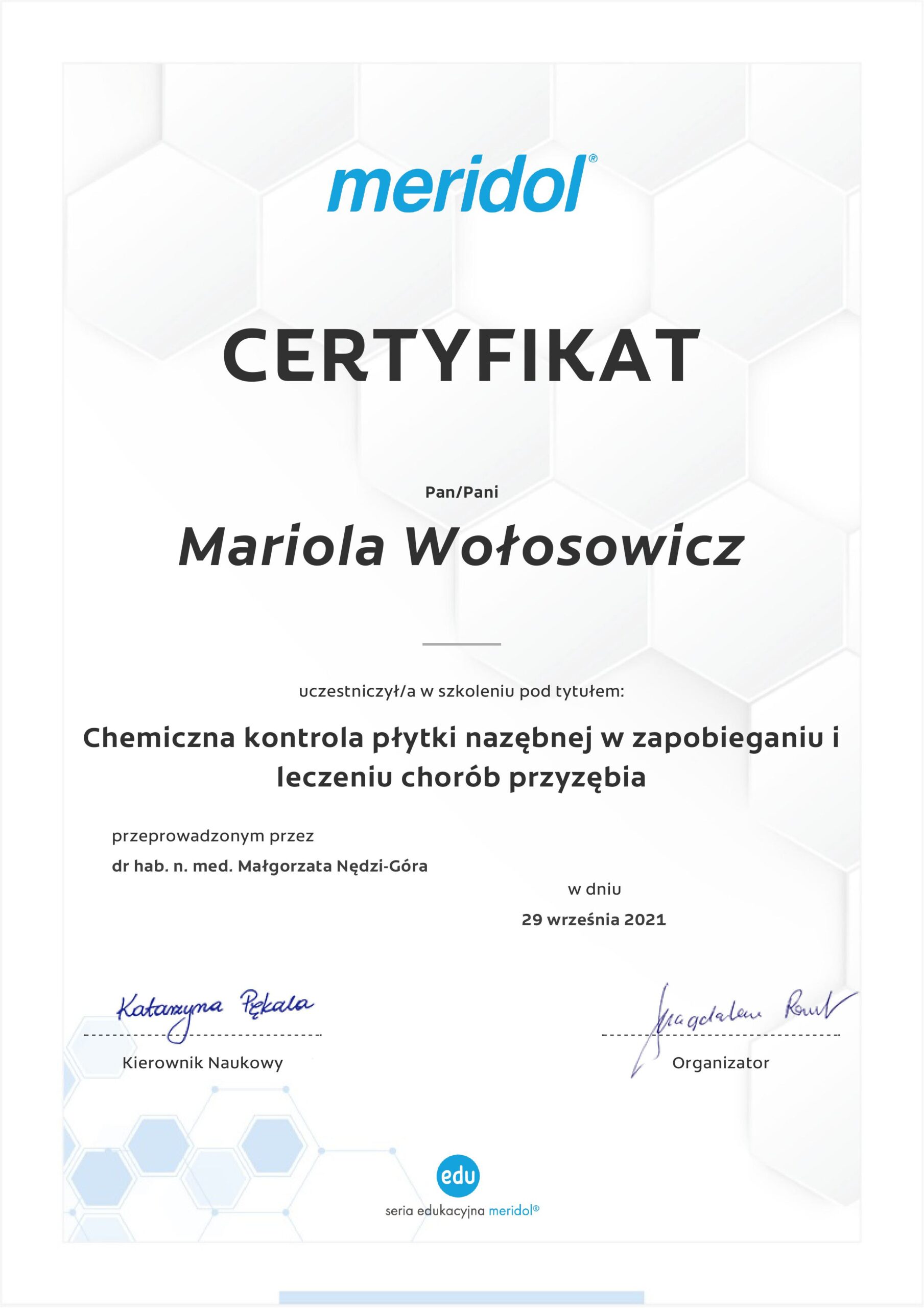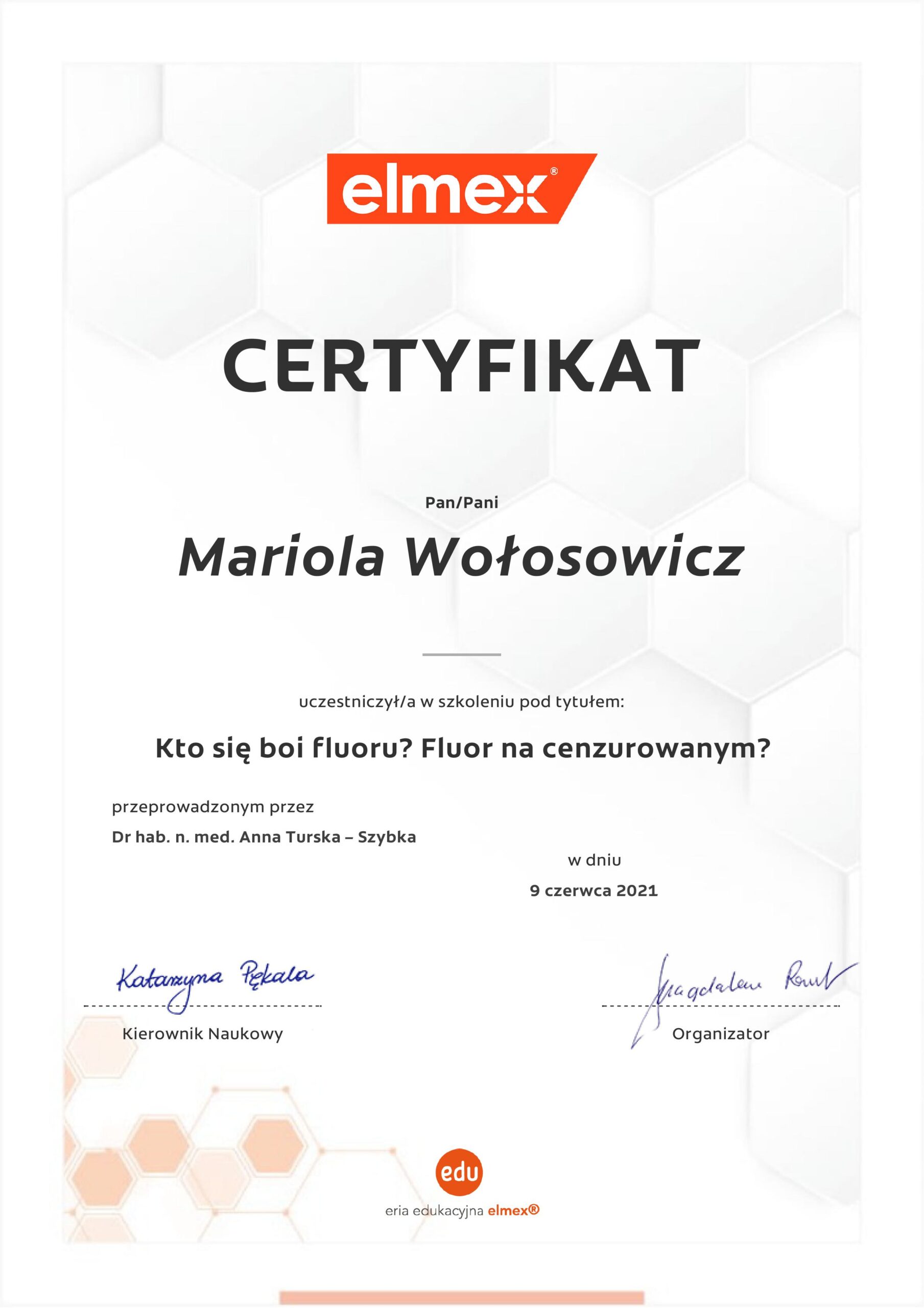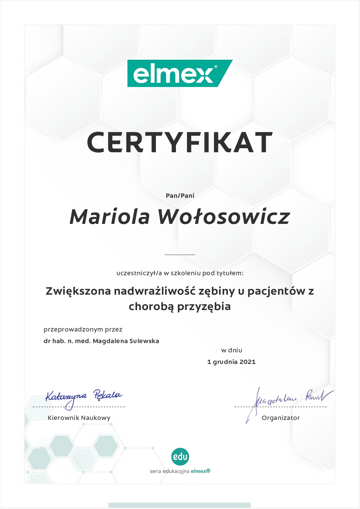 Regularnie podnoszę kwalifikacje uczestnicząc w licznych kursach i szkoleniach,