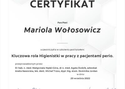 Profesjonalne oczyszczanie zębów wykonywane przez higienistkę stomatologiczną Mariolę Wołosowicz pozwala skutecznie zadbać o zdrowie jamy ustnej oraz estetykę uśmiechu.